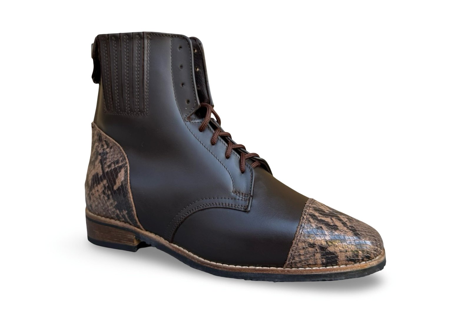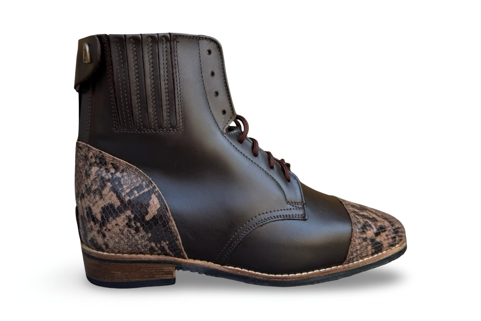 Az Aurora lovaglócipő kényelmes viseletet és stabil tartást nyújt. Elöl fűzős, hátul cipzáras megoldással készül, a bokánál elhelyezett rugalmas betét pedig természetesen követi a láb formáját, miközben megfelelő alátámasztást ad lovaglás és mindennapi használat során. A cipő rendelhető egyszínű változatban, de különböző anyagkombinációkkal, lyukasztott mintákkal és orrdíszítésekkel személyre is szabható. A többféle talpkialakítás lehetővé teszi, hogy minden felhasználási területhez az ideális megoldást válaszd. Igény esetén téli béléssel is készül, így hideg időben is komfortos viselet marad.