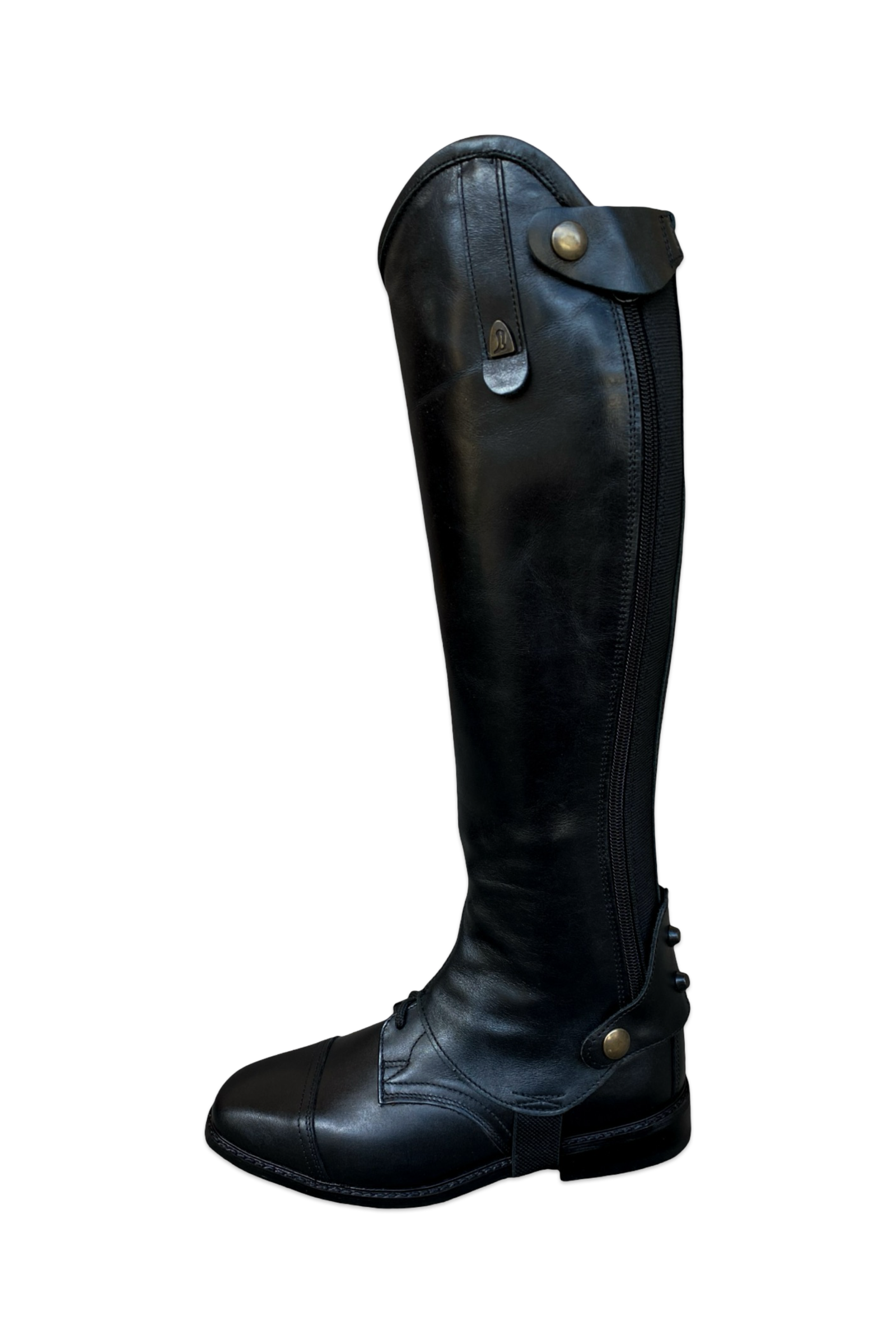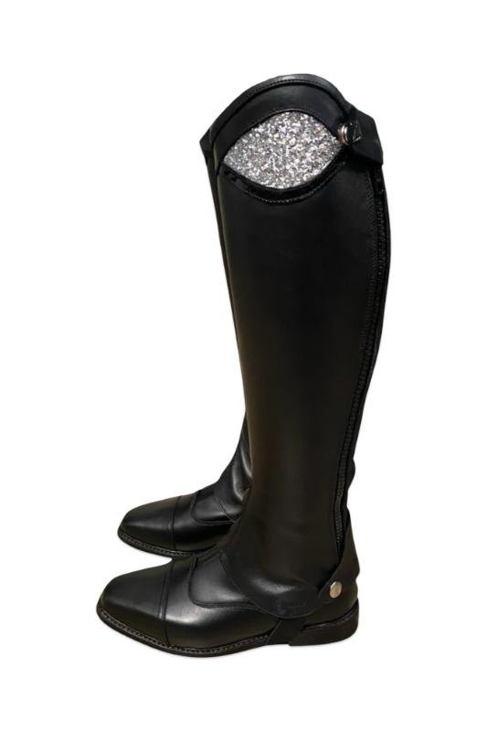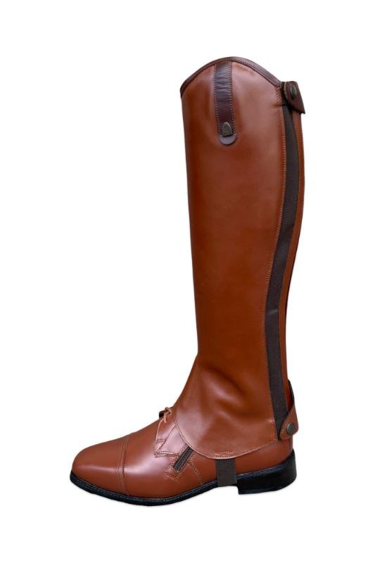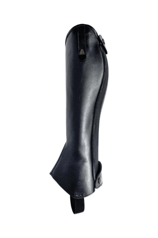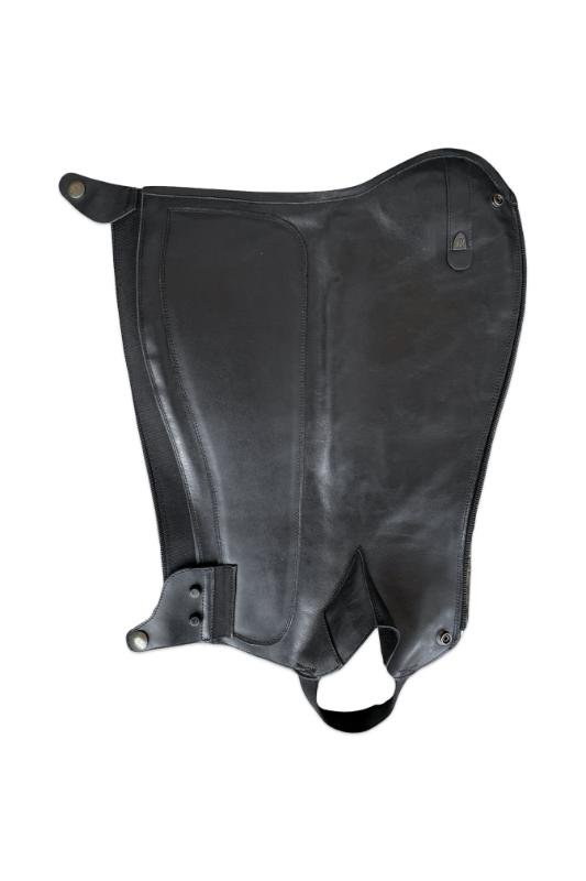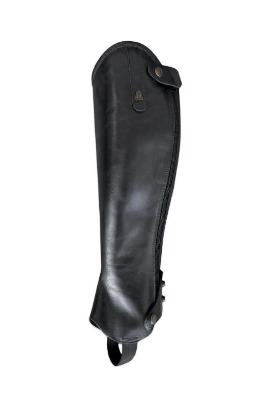 The Softy shin guard is a lightweight, unlined model made of soft, high-quality leather, which provides maximum freedom of movement and a direct feel. Its clean design and flexible rear rubber insert provide a comfortable, harmonious fit when worn with riding boots, even during prolonged use. The zipper can be placed at the back or side, and the opening direction can be requested from top to bottom or bottom to top. The model can be ordered with various top decorations, and can be made with spur holders and an internal reinforcement layer and shield for increased durability.